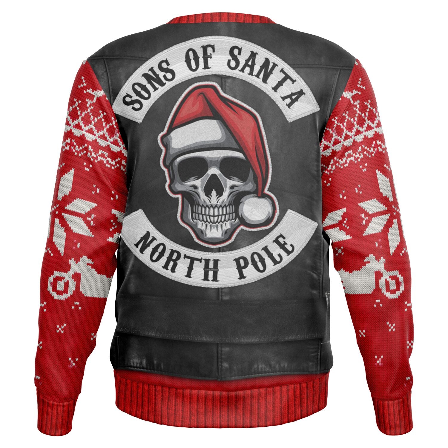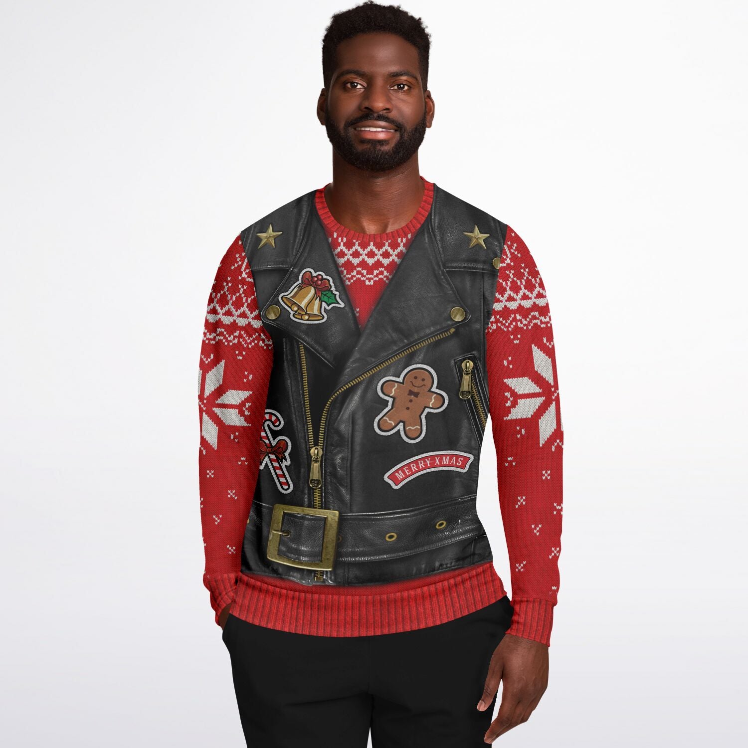 Turn heads this holiday season with the ultimate ugly biker Christmas sweater! The perfect piece for office parties, family get-togethers, or your next ugly sweater contest.