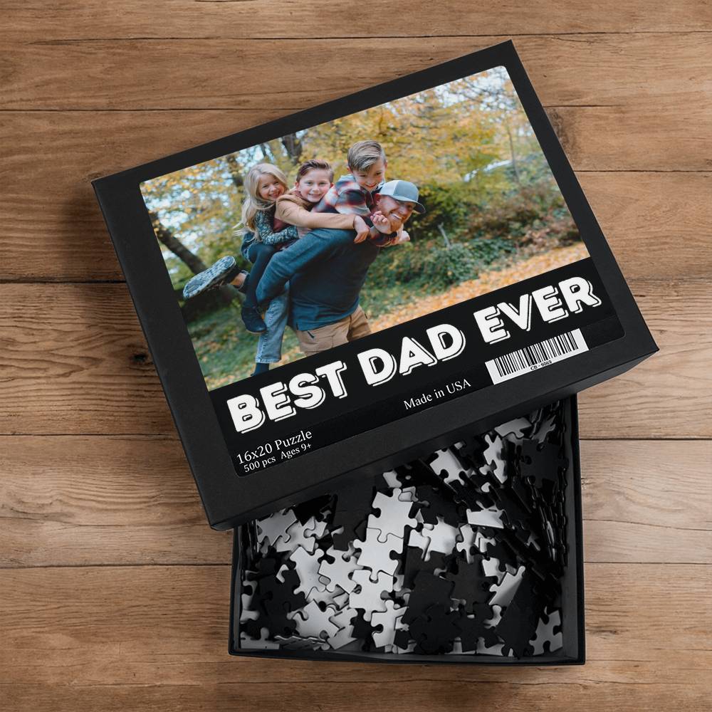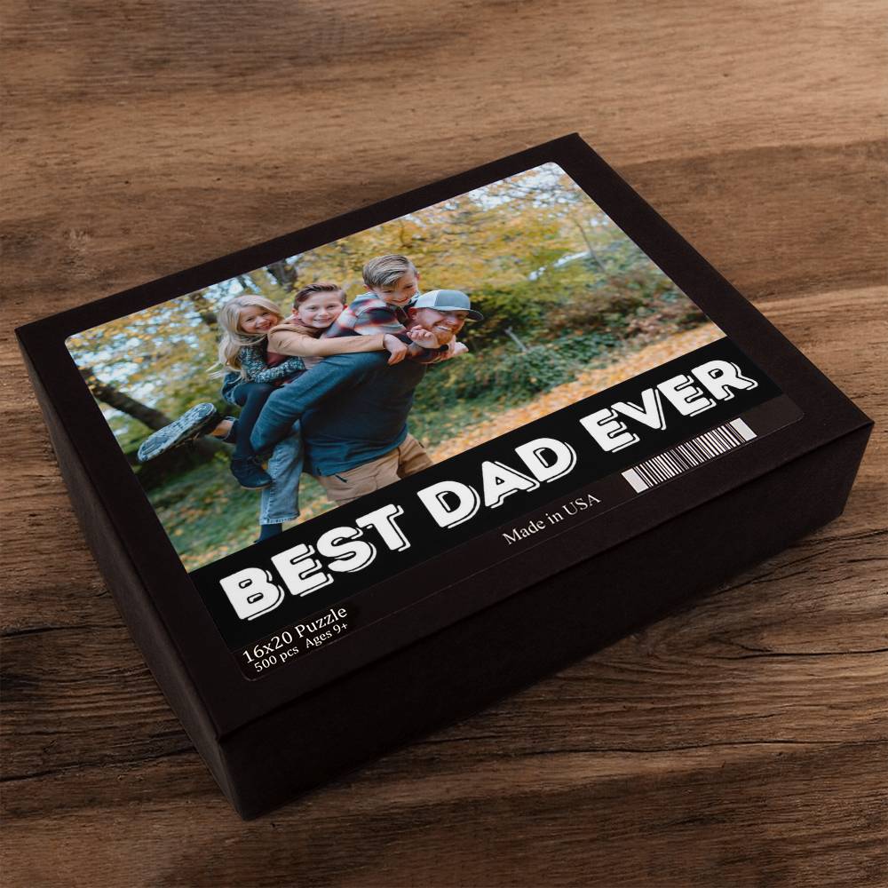 Surprise Dad with a heartfelt gift he’ll treasure forever! This 16" x 20" custom jigsaw puzzle features the bold and loving message "Best Dad Ever"— a simple phrase packed with meaning. Make it extra special by adding your own photo, whether it’s a cherished family moment, a snapshot of dad and the kids, or a memory that makes him smile.