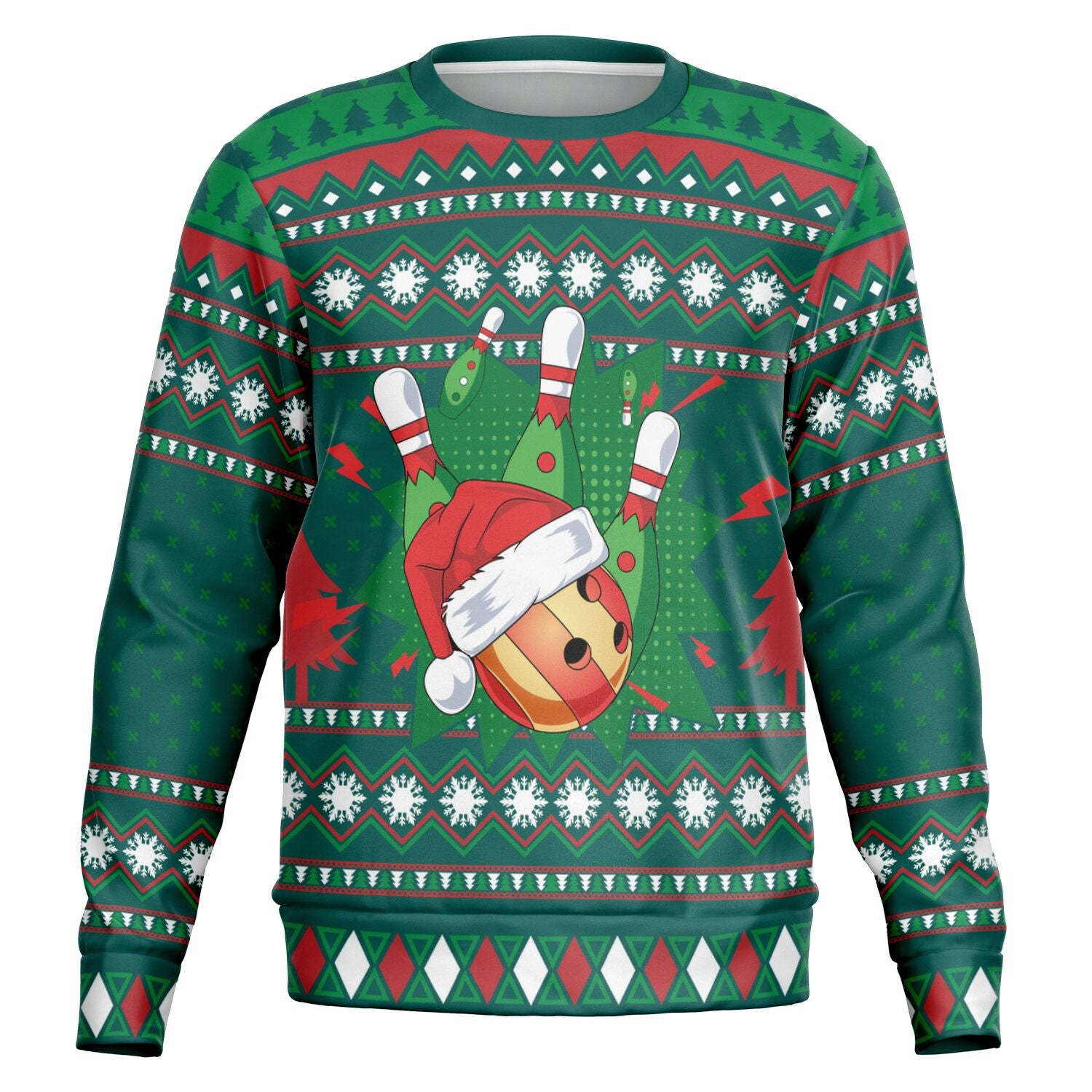 Turn heads this holiday season with the ultimate ugly Christmas sweater for bowling lovers. The perfect piece for office parties, family get-togethers, or your next ugly sweater contest.