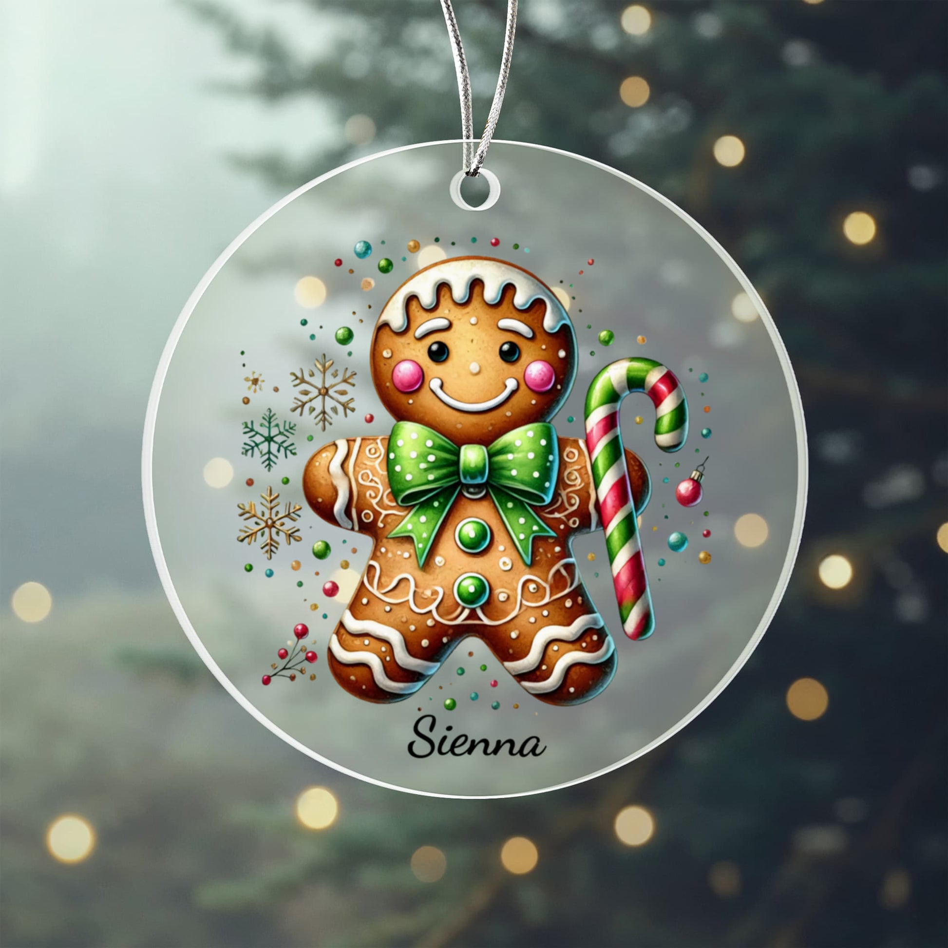 Made from high-quality clear acrylic, this charming decoration features an adorable gingerbread man design customized with your chosen name — making it the perfect keepsake for family, friends, or little ones.