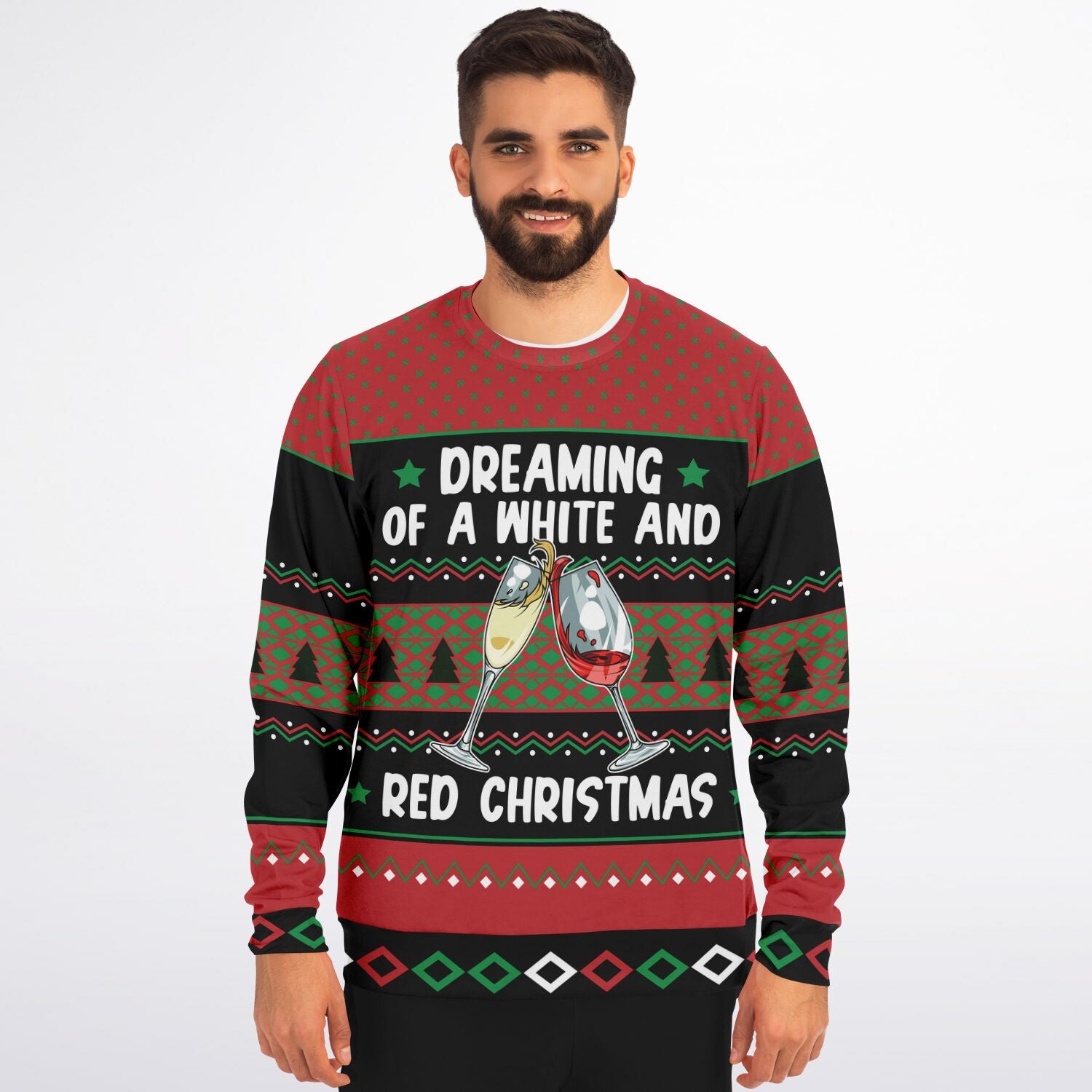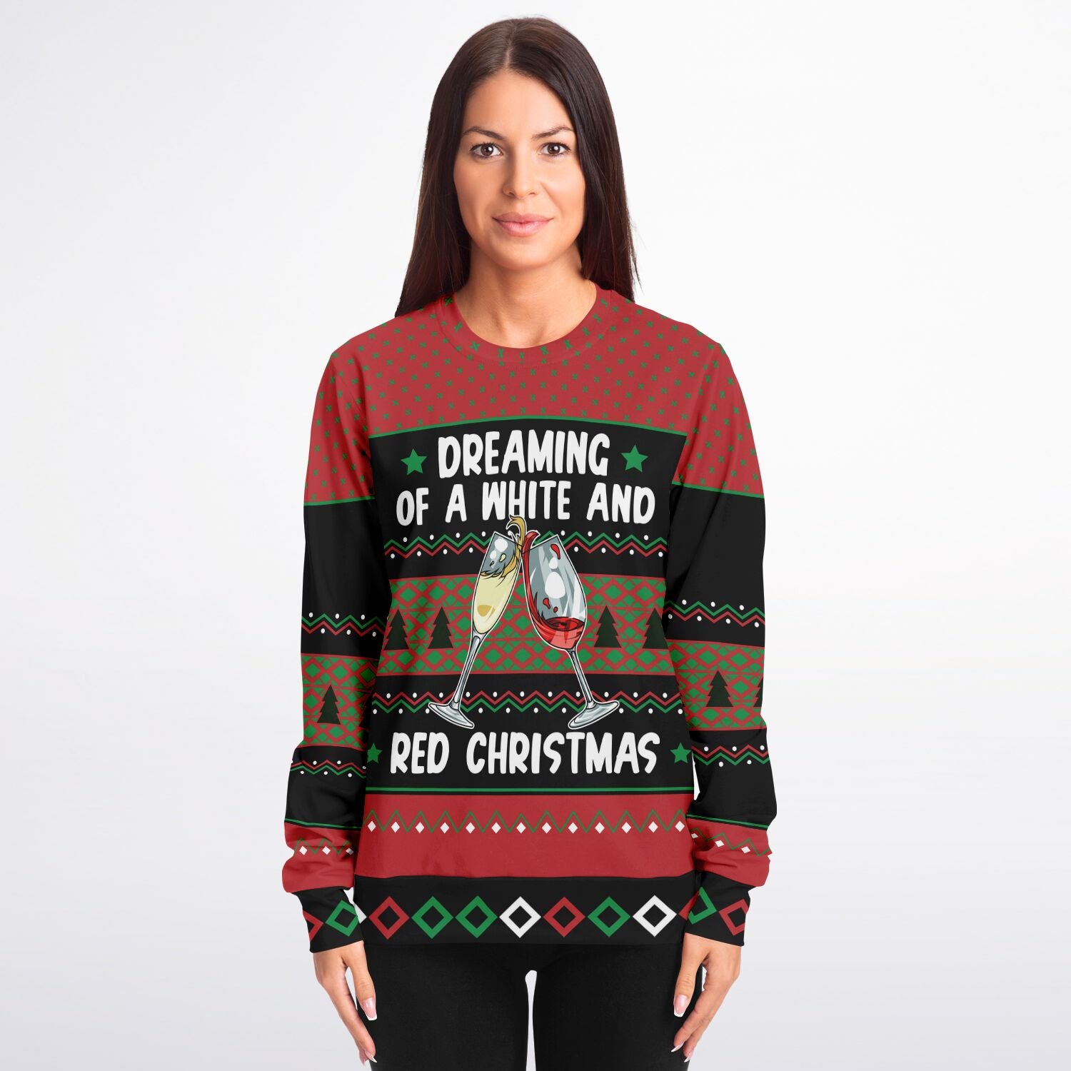 Turn heads this holiday season with the ultimate ugly Christmas sweater for wine lovers. The perfect piece for office parties, family get-togethers, or your next ugly sweater contest. Stand out and spread the holiday spirit with this must-have Christmas wardrobe essential!Made with 95% Recycled Polyester / 5% Spandex.